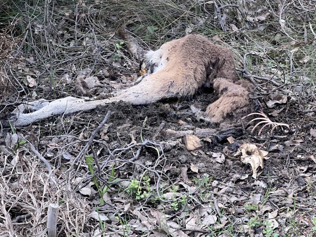Same dead kangaroo, much more decayed. Note how the skull has gone missing, and the skeleton has changed color. Then: