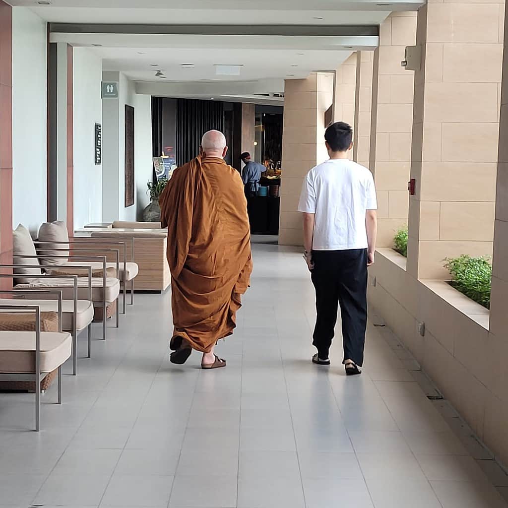 A last role is to protect Ajahn Brahm by running interference: sometimes there are people who keep asking him questions, even when Ajahn was very clearly tired. Once during a retreat, a retreatant kept badgering him with questions, even as Ajahn was walking very slowly away… so that prompted me to interject and ask her “sister, could you put your questions in the Q&A basket instead? Ajahn is quite tired after a whole evening of Q&A already!” I should add that this very rarely occurs, as Ajahn is extremely skilled and wise in dealing with people.